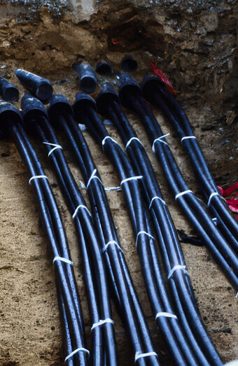 We connect new properties to the electricity network using underground service cables from the nearest pillar or pit, handling all trenching, conduit installation, and cable terminations with network-approved materials and methods.